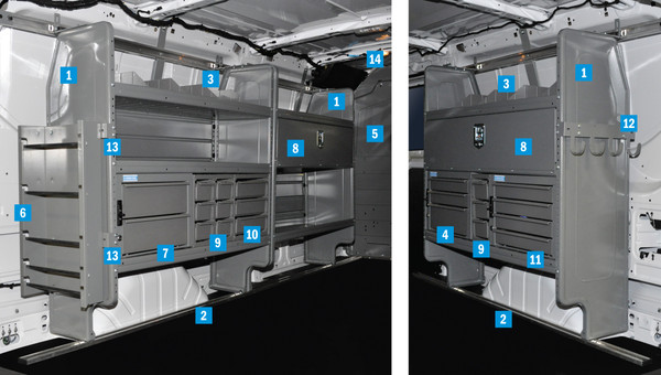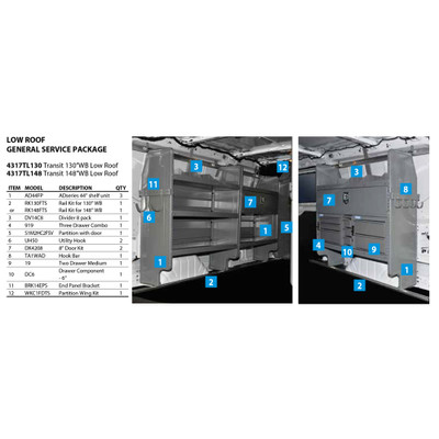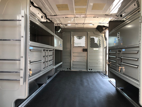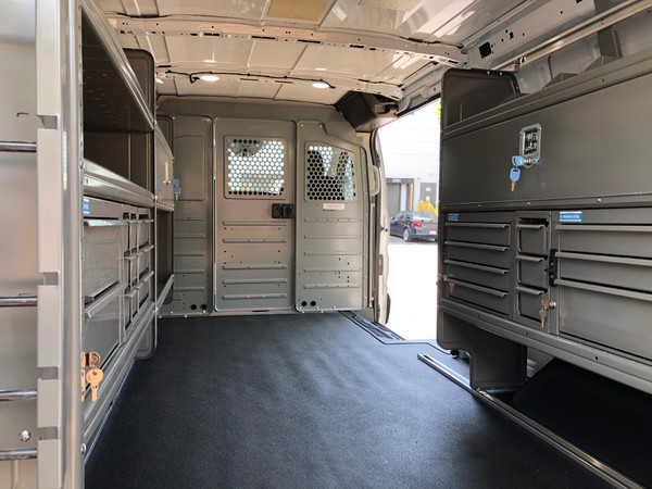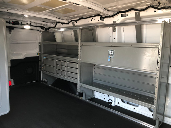 This Electrical Contractor Interior is designed to fit the 148" wheelbase, low roof Ford Transit.