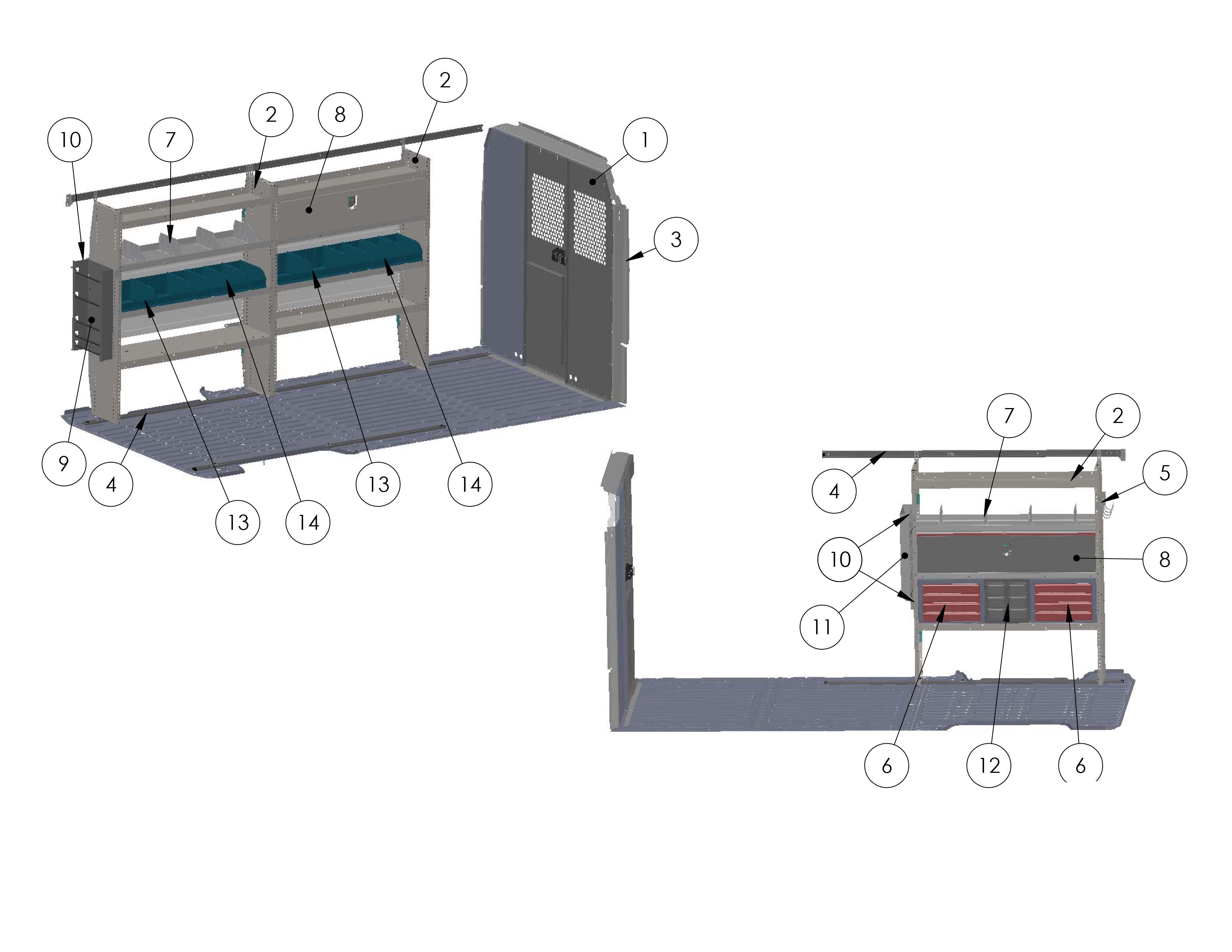 This Electrical Contractor Interior is designed to fit the 159" wheelbase RAM ProMaster.