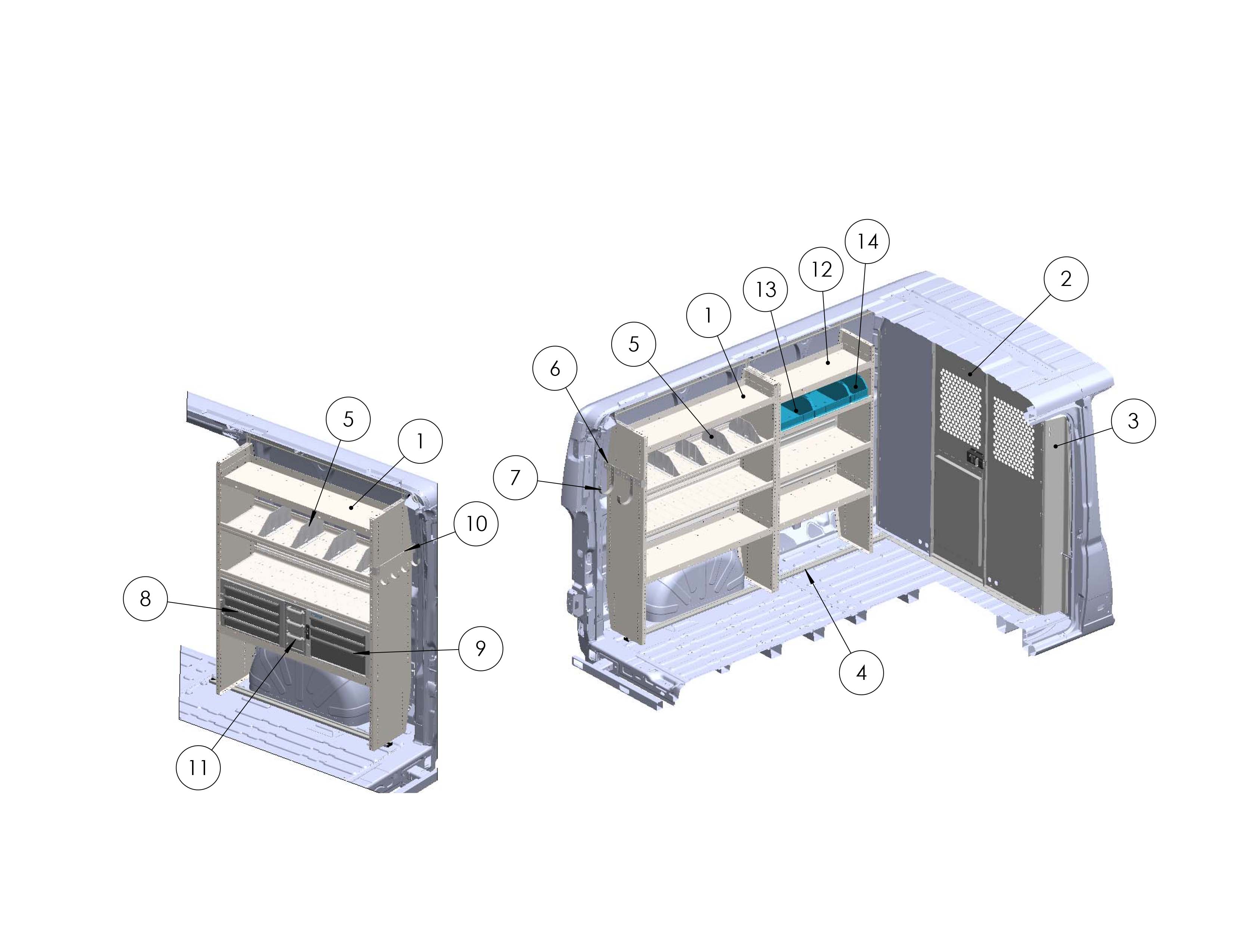 This General Service Interior is designed to fit the 118" wheelbase RAM Promaster.