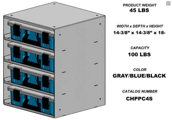 Adrian Steel CHPPC4S 4-Case Holder w/ Cases, Gray, Blue