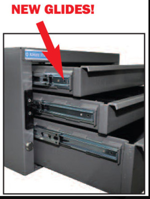 • Drawer retention stops prevents drawer from coming open while the vehicle is in transit.