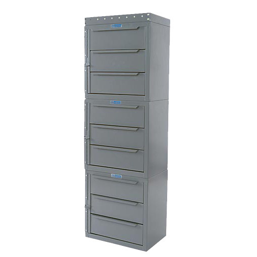 The MD602 Drawer/Tray Module features three lockable 3-drawer mediums and a parts tray on top with a 2" lip. Measures 18" W, 56" H, 12" D.