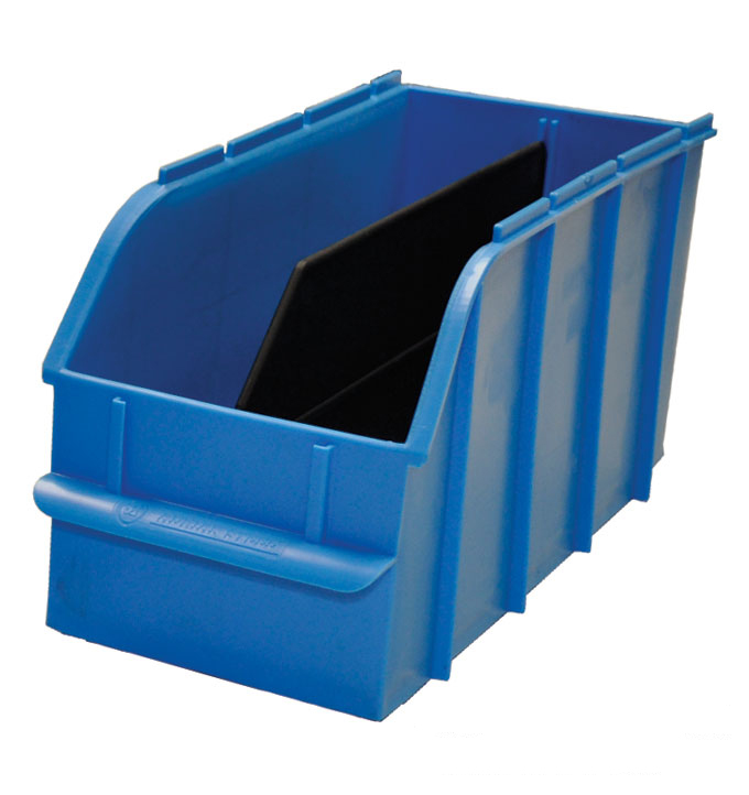 These exclusive new molded storage bins are perfect for visual inventory management. The innovative rail system locks the bins in place, preventing them from shifting from side to side causing noise or falling out into the aisle when the vehicle is in motion. Available in 6" and 12" widths to maximize the ADseries shelf space. The bins can nest on top of each other when at the job site or in the warehouse getting filled to go. The front allows for the placement of a label so you can find parts quickly and each bin can accommodate one optional divider to organize smaller parts.