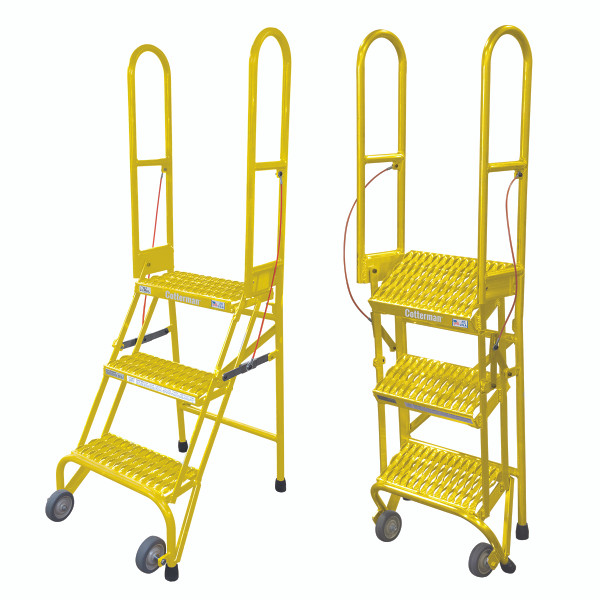 Cotterman SAS3A6 | Steel 3-Step Stock-N-Store Rolling Folding Ladder | 30 In. Top Step Height | 60 In. Overall Height | A6 Perforated Tread