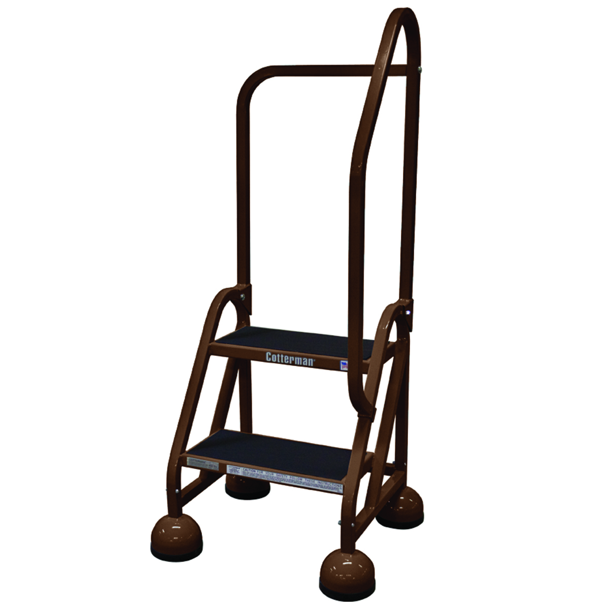 COTTERMAN® MasterStep® Steel Office Ladders were first introduced to compliment business interiors, but have since expanded for use in retail, warehousing and even manufacturing applications. The tapered step design, retractable casters and large protective cupped feet increase stability. One thru six step sizes are available with single or double top steps. Left, right or double handrail arrangements and a removable filing shelf are offered for added convenience. Office Ladders are equipped with easy rolling 2″ spring casters for quick start and stop mobility. Comfortable climbing steps and platform are covered with ribbed vinyl matting as standard. Office ladders meet applicable OSHA and ANSI standards.