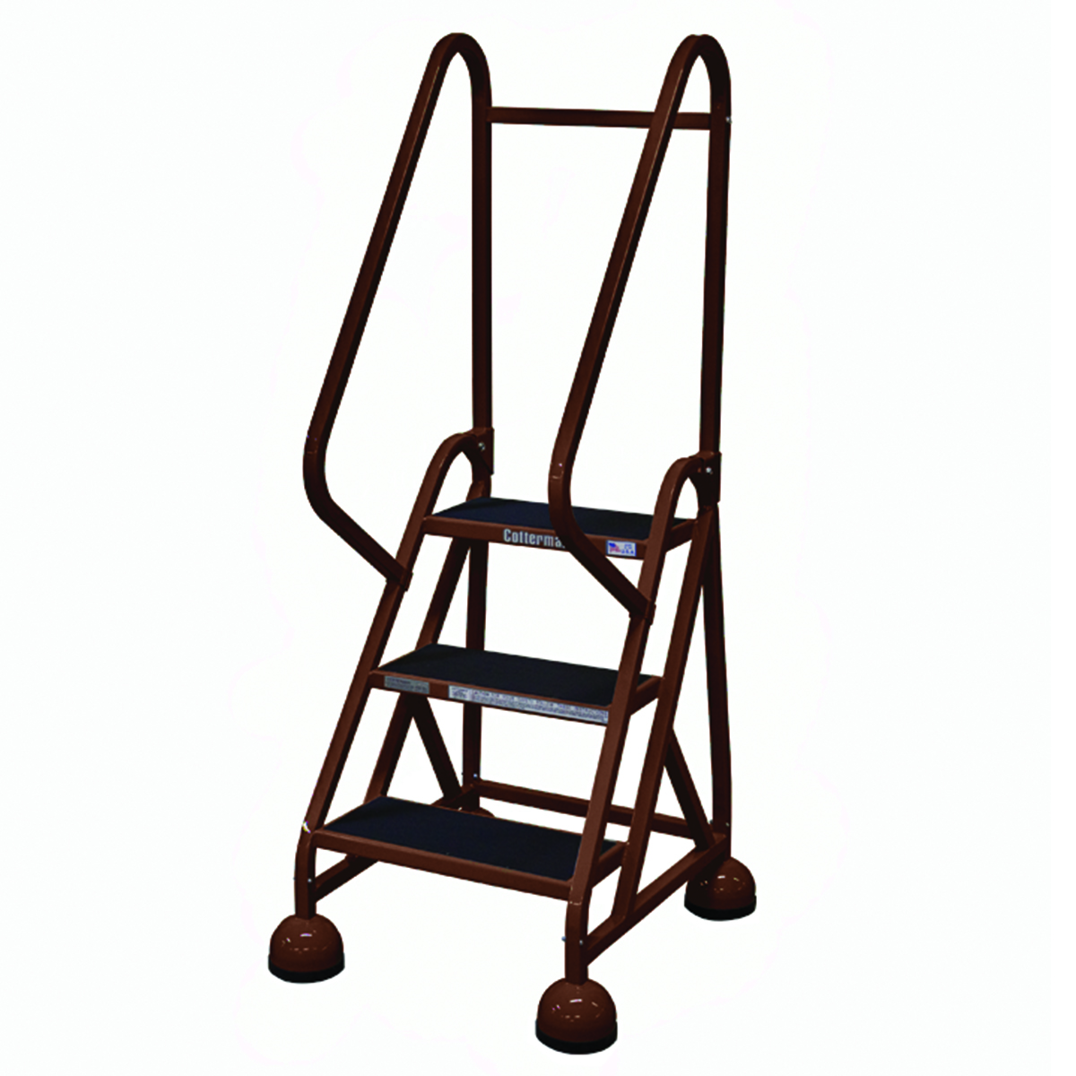 COTTERMAN® MasterStep® Steel Office Ladders were first introduced to compliment business interiors, but have since expanded for use in retail, warehousing and even manufacturing applications. The tapered step design, retractable casters and large protective cupped feet increase stability. One thru six step sizes are available with single or double top steps. Left, right or double handrail arrangements and a removable filing shelf are offered for added convenience. Office Ladders are equipped with easy rolling 2″ spring casters for quick start and stop mobility. Comfortable climbing steps and platform are covered with ribbed vinyl matting as standard. Office ladders meet applicable OSHA and ANSI standards.