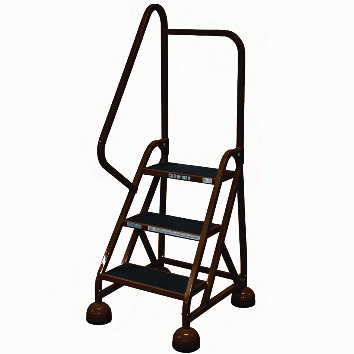 COTTERMAN® MasterStep® Steel Office Ladders were first introduced to compliment business interiors, but have since expanded for use in retail, warehousing and even manufacturing applications. The tapered step design, retractable casters and large protective cupped feet increase stability. One thru six step sizes are available with single or double top steps. Left, right or double handrail arrangements and a removable filing shelf are offered for added convenience. Office Ladders are equipped with easy rolling 2″ spring casters for quick start and stop mobility. Comfortable climbing steps and platform are covered with ribbed vinyl matting as standard. Office ladders meet applicable OSHA and ANSI standards.