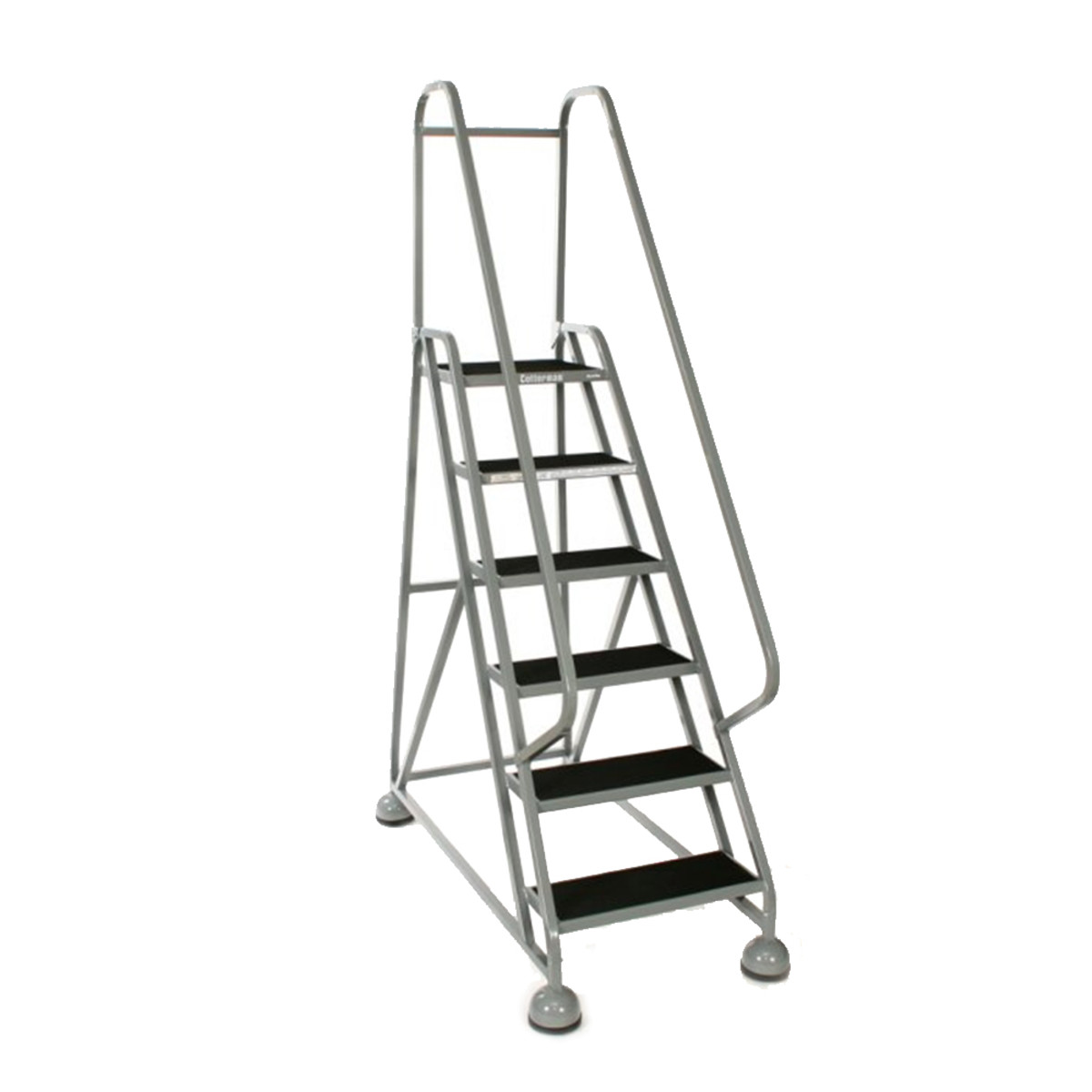 COTTERMAN® MasterStep® Steel Office Ladders were first introduced to compliment business interiors, but have since expanded for use in retail, warehousing and even manufacturing applications. The tapered step design, retractable casters and large protective cupped feet increase stability. One thru six step sizes are available with single or double top steps. Left, right or double handrail arrangements and a removable filing shelf are offered for added convenience. Office Ladders are equipped with easy rolling 2″ spring casters for quick start and stop mobility. Comfortable climbing steps and platform are covered with ribbed vinyl matting as standard. Office ladders meet applicable OSHA and ANSI standards.