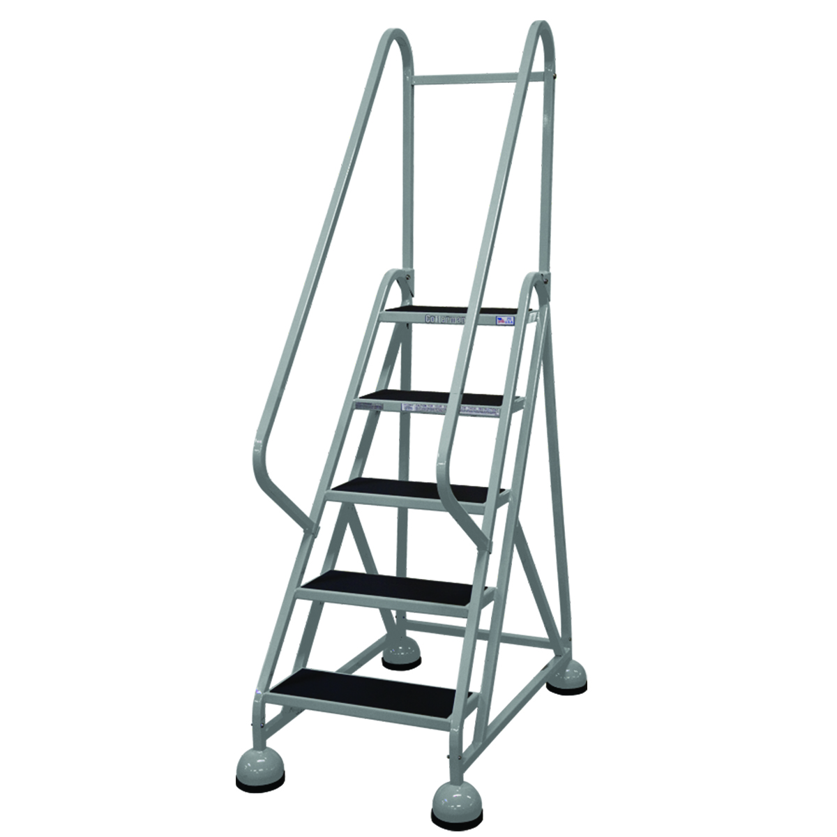 COTTERMAN® MasterStep® Steel Office Ladders were first introduced to compliment business interiors, but have since expanded for use in retail, warehousing and even manufacturing applications. The tapered step design, retractable casters and large protective cupped feet increase stability. One thru six step sizes are available with single or double top steps. Left, right or double handrail arrangements and a removable filing shelf are offered for added convenience. Office Ladders are equipped with easy rolling 2″ spring casters for quick start and stop mobility. Comfortable climbing steps and platform are covered with ribbed vinyl matting as standard. Office ladders meet applicable OSHA and ANSI standards.