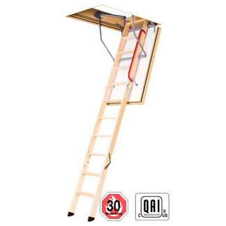 Fakro LWF 869720 Wood Attic Ladder | "FIRE RATED" & "Insulated" | 30" x 54" Opening / 10'1" Ceiling Height | 300 lb Capacity