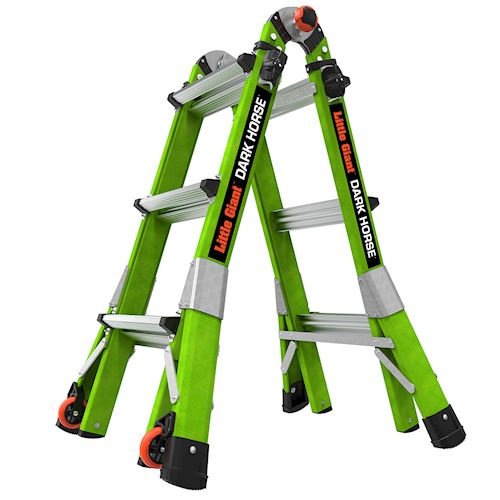 Little Giant Model 16113-001 | DARK HORSE 2.0, Model 13 - ANSI Type 1A - 300 lb Rated - Fiberglass Articulated Extendable Ladder with TIP & GLIDE Wheels