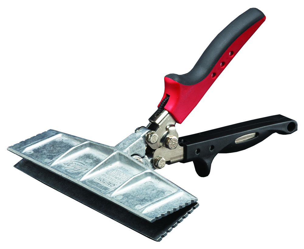 Malco’s Hand Seamers, with die cast zinc jaws, also feature ergonomic RedLine Handle technology. An Engineered handle opening compliments the natural power stroke of any user’s hand and maximizes the powerful 7:1 mechanical advantage of compound-leverage head to handle linkage. Comfortable handle grip contours, a non-slip grip insert, spring handle actuation and a thumb-operated handle latch ensure a natural fit and feel for comfortable one hand operation anywhere on the job.