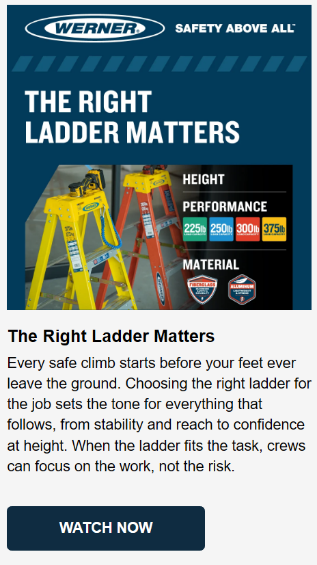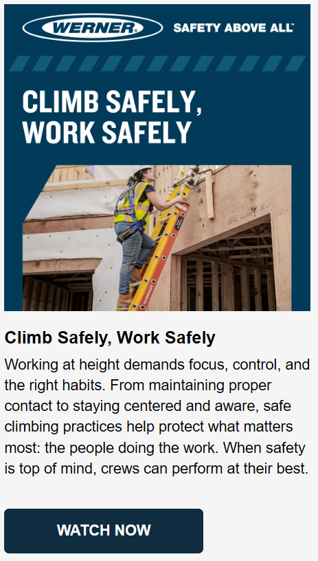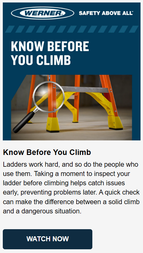 Explore Werner’s All‑New Climbing Safety Video Series, short, easy‑to‑watch videos designed to reinforce safer decisions on the job. From choosing the right ladder to climbing and working with confidence, these practical resources help make safety second nature.