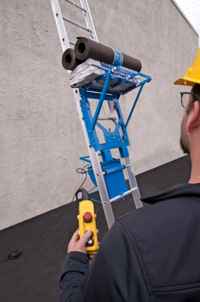 Each Safety Hoist ladder hoist is simple to operate. Its one-person operation requires very little training. All of our power ladders are durable yet light weight, which makes them easily portable. Our roofing ladders are perfect for moving material to where it actually needs to go—high-pitched roofs and hard-to-reach areas included. No special tools are required for assembly or operation.