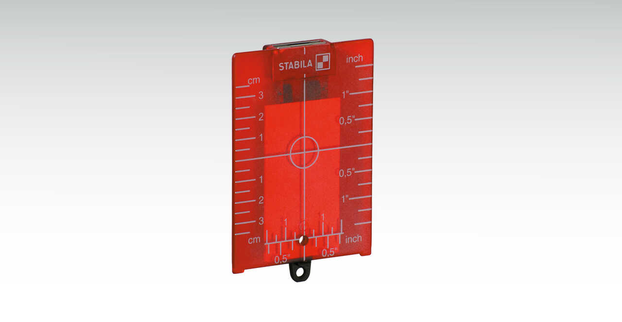 Target plate with magnetic holder and cross-hair for aligning the laser vertically and horizontally with a target point. Improves the visibility of the laser beam. For suspended ceilings, the target plate can be attached to steel grid. Integrated leg stand for use on flat surfaces.