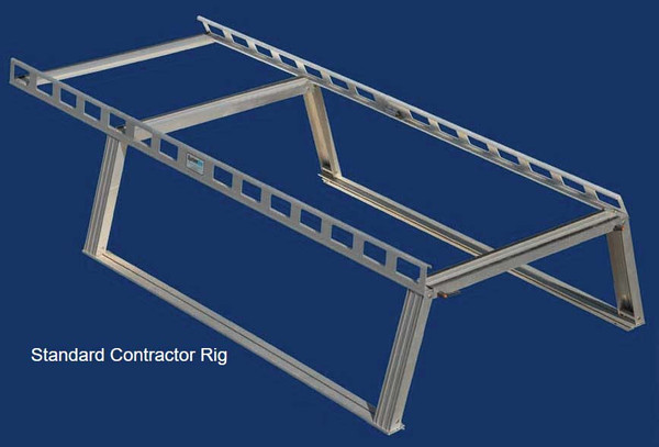 System One® makes racks in various lengths and heights for service/utility body trucks and they are offered in both standard and I.T.S.® series. These racks are usually mounted to our Utility Traks for increased rigidity and tie-down capability. In bodies with top-opening compartments where the stationary ledge near the hinge is often too narrow to mount the Utility Traks, our "B Trak" is usually the solution. Body to roof height varies among these trucks so we stock legs of varying lengths from 12" up in 2" increments. Utility Traks are available in lengths of 8', 9' and 11' to accommodate various body lengths. Our Extension Beams (for Contractor Rigs™) are available in lengths of 102", 120", 138", 147", 156" and 174" for various cab/body combinations. System One’s® Contractor Rig® and Utility Rig™ can be mounted to utility bodies. Our Utility Trak provides a rigid mounting surface for either style rack. One, two or three trusses can be mounted and dismounted with ease anywhere along the length of the Trak. The Utility Trak attaches to the top surface of the utility body using concealed bolts and also serves as a structural anchor rail for tie-downs. Racks are available for 8 , 9 and 11 ft. bodies. The Extension Beams for Contractor Rigs are supplied in lengths of 102”, 120”, 138”, 147”, 156” and 174” depending on the body and cab length.