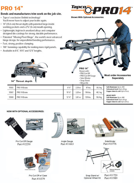 TAPCO 10568 PRO 14 Series Siding Brake / 10'6" Heavy Duty