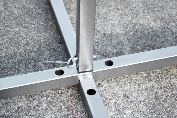 Constructed with heavy-duty Pre-galvanized steel tubing and a clear coat finish. Will not rust from inside out. Interlocking legs, pin to the vertical stanchion tube for quick set-up and tear down. Includes: 4 stanchions with 100′ of warning line pennants.