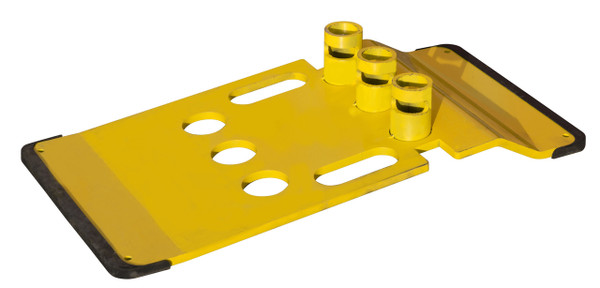 3 hole base, yellow powder coat with rubber feet (58 lbs). Nests and stacks easily for storage before and after use. Zip Base offers superior resistance to impact loads and its unique design is 40% lighter than competitor bases. Comes with toe board slots on each side and handle holes for lifting.