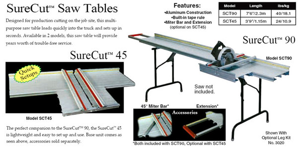 The SureCut 90 and the SureCut 45 saw tables are designed to provide fast reliable service when cutting siding, fascia, studs,soffit, trim moldings, fiber-cement and decking planks of all types.