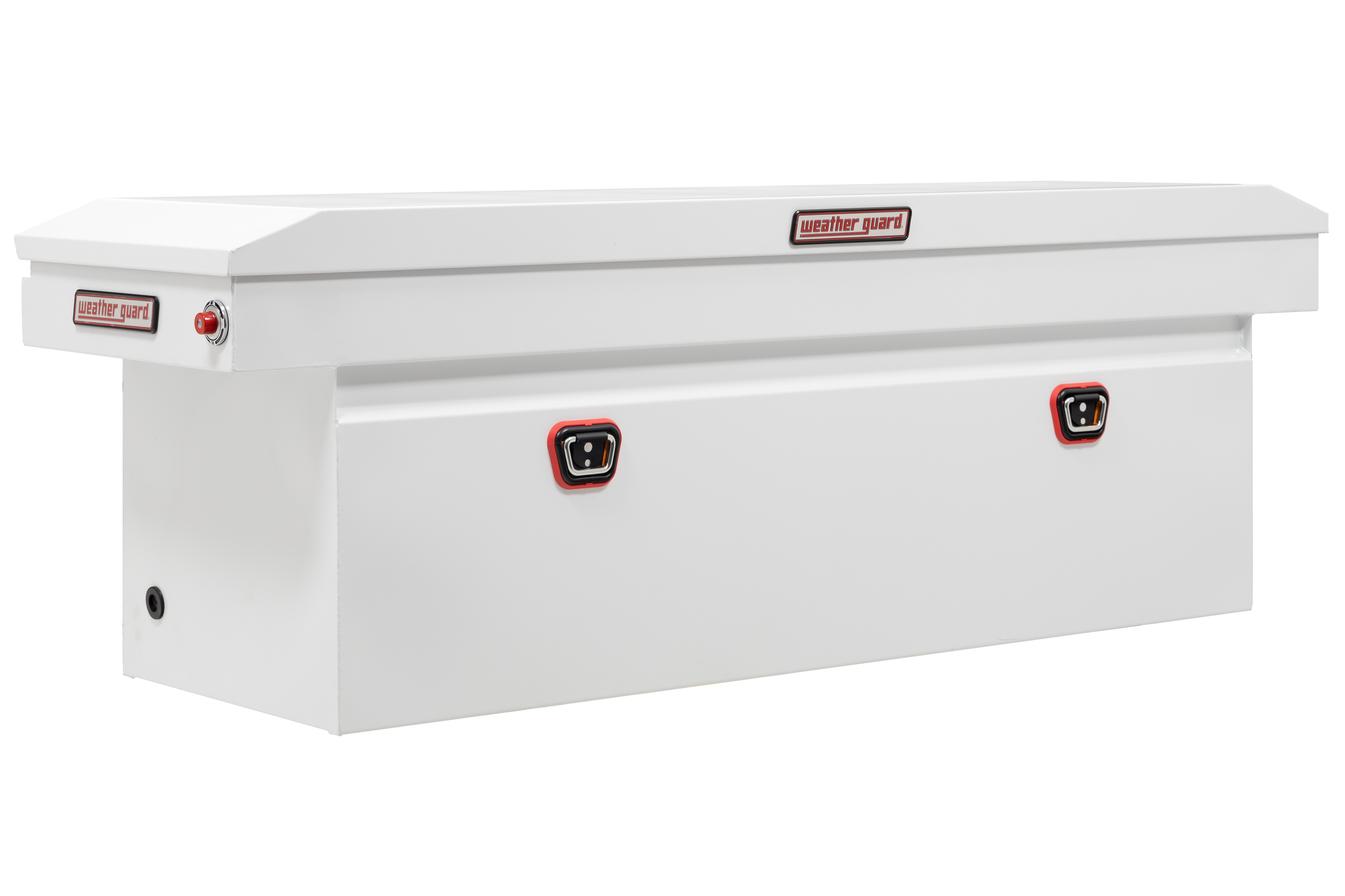 Introducing the re-designed Weather Guard Saddle Box, featuring One Key Simplicity, Improved High Security Locking System. The Model 128-X-04 is a deep steel truck tool box for full size trucks. The box features the new push button lock that can code multiple boxes on a truck or entire fleet to the same key. The improved high security locking system provides unmatched protection.