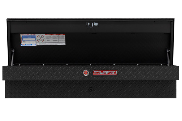 Introducing the re-designed Weather Guard Lo-Side Box, featuring One Key Simplicity, Improved High Security Locking System. The Model 174-X-03 is a 56" aluminum truck tool box for full size and compact trucks. The box features the new push button lock that can code multiple boxes on a truck or entire fleet to the same key. The improved high security locking system provides unmatched protection.