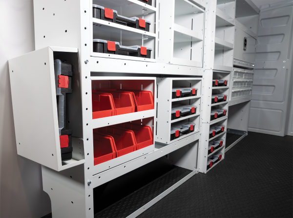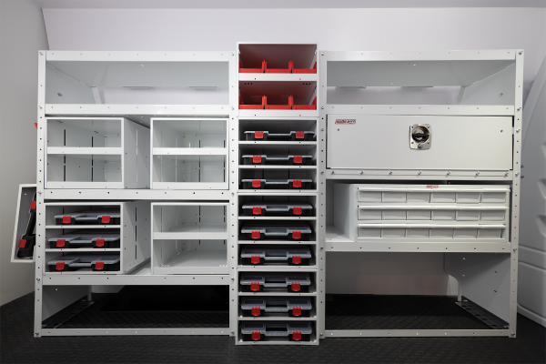 Customize your small parts storage solution with a this three shelf stackable cabinet with parts case storage cases. Model 9960-3-01 can be mounted on shelves or the floor and can be oriented towards the aisle, the front of the van, the back of the van or towards the side door allowing for maximum customization. Combine with other stackable cabinets with easy to use connecting strap to create your ideal storage solution.