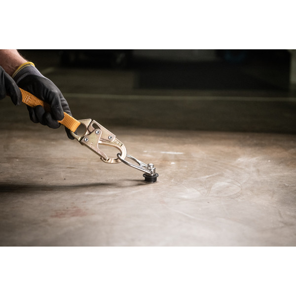 The Werner A510300 R3 Concrete Anchor is a reusable, safe, and secure anchorage solution for horizontal, vertical, or overhead anchoring applications. A rapid quick-release button allows users to easily install and remove, boosting productivity. Built with a rigid tri-wedge design and diamond-hard carbon coating, it enhances durability in all types of concrete applications. The anchor incorporates an omni-directional design allowing the connector to rotate 360 degrees, and flip back and forth 180 degrees, to increase connector compatibility.