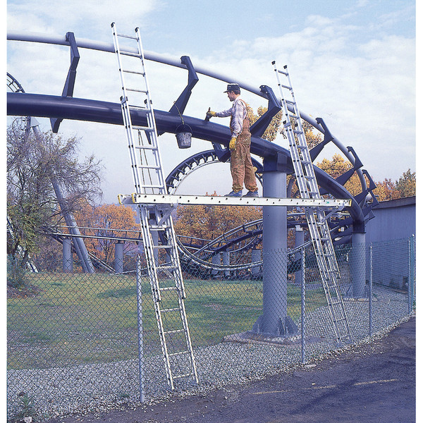 The D1500-2 series aluminum extension ladders have a duty rating of 300lb and have extra heavy duty I-beam side rails. The base and fly sections separate easily and can be used separately. Guide brackets help to ease operation when raising and lowering the fly section. The exclusive Alflo® rung joint means Twist-Proof® performance every time. Traction-Tred® D rungs are slip resistant, and the rugged shoes rest flat or are held in spur position with the SHU-LOK® feature. Rugged spring-loaded locks operate smoothly. Mar-resistant end caps protect the surface ladder is resting against.