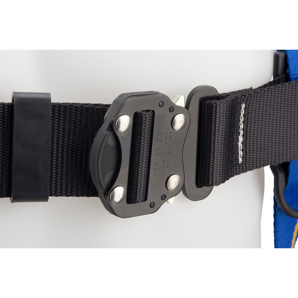 Werner Blue Armor 2000 harnesses are designed and manufactured for the most demanding applications and the most serious professional user. Unique wear indicating webbing and impact indicators allow for easy inspection. They feature 5-point adjustments for optimal fit, lightweight hardware and pads, and bright colors for worker visibility on the jobsite. The back pad is large enough to protect the user's back, padded to absorb sweat and feel comfortable, and designed to prevent tangling when donning the harness. Shoulder pads provide additional user comfort. The rear dorsal D-ring is made from high quality forged alloy steel for strength and durability. Quick connect chest and leg buckles for fast and easy connections.