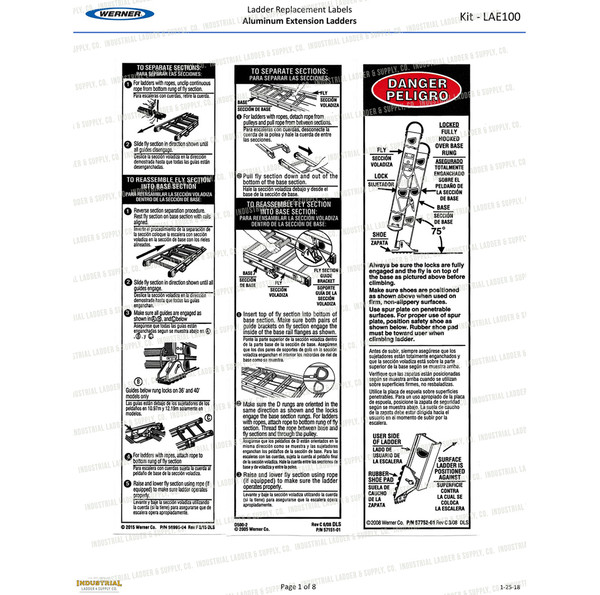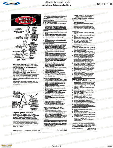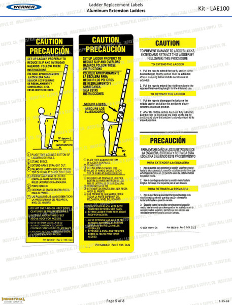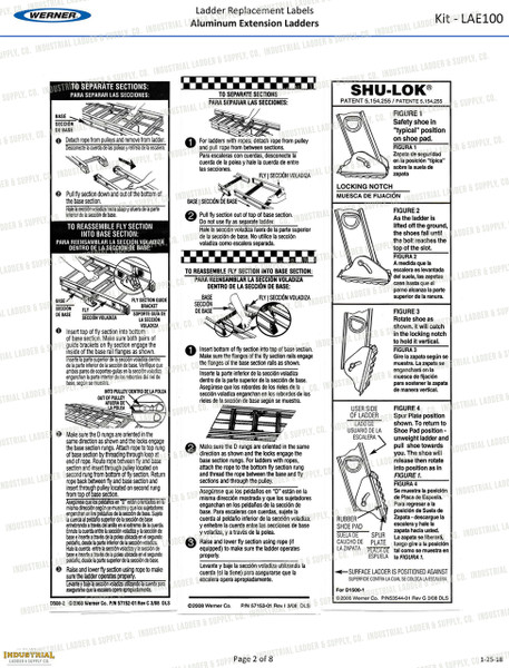 Werner Parts LAE100 Safety Labels - Aluminum Extension Ladders | ALUM EXT LDR LABEL REPL KIT