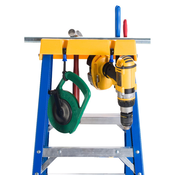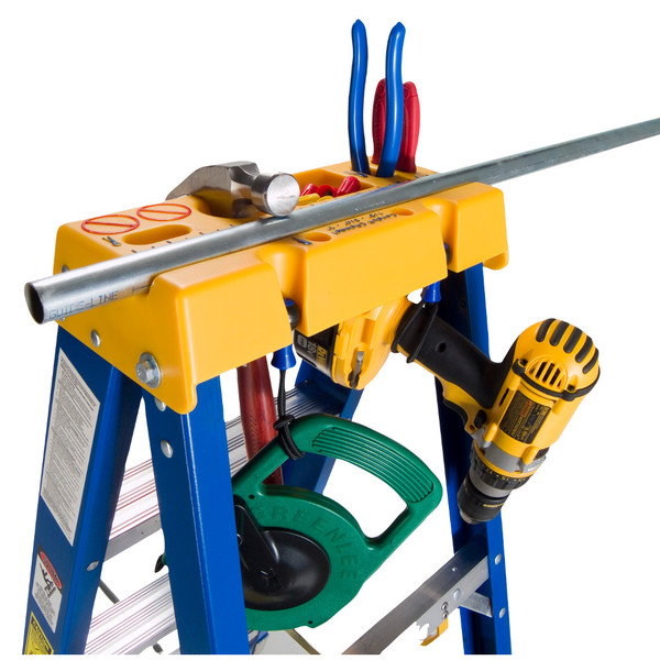 The Old Blue® Series Electrician's ladder is not your ordinary Step Ladder -- it's a Jobstation™ . These Jobstations save time and increase productivity on the job. With a duty rating of 375 pounds, the Old Blue series features a customized HolsterTop® with ToolLasso® sockets to accommodate even more tools. Wire spool holders for both large and small spools and conduit holders with a built-in cutting system make these ladders ideal for electricians. The EDGE® bracing system helps to decrease damage to the rail. Fiberglass rails are non-conductive.