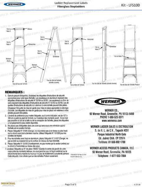 Werner Parts LFS100 All Labels for Fiberglass: Steps, Platforms, Twins, Twin Platforms, Tripod Stepladder, and Podiums