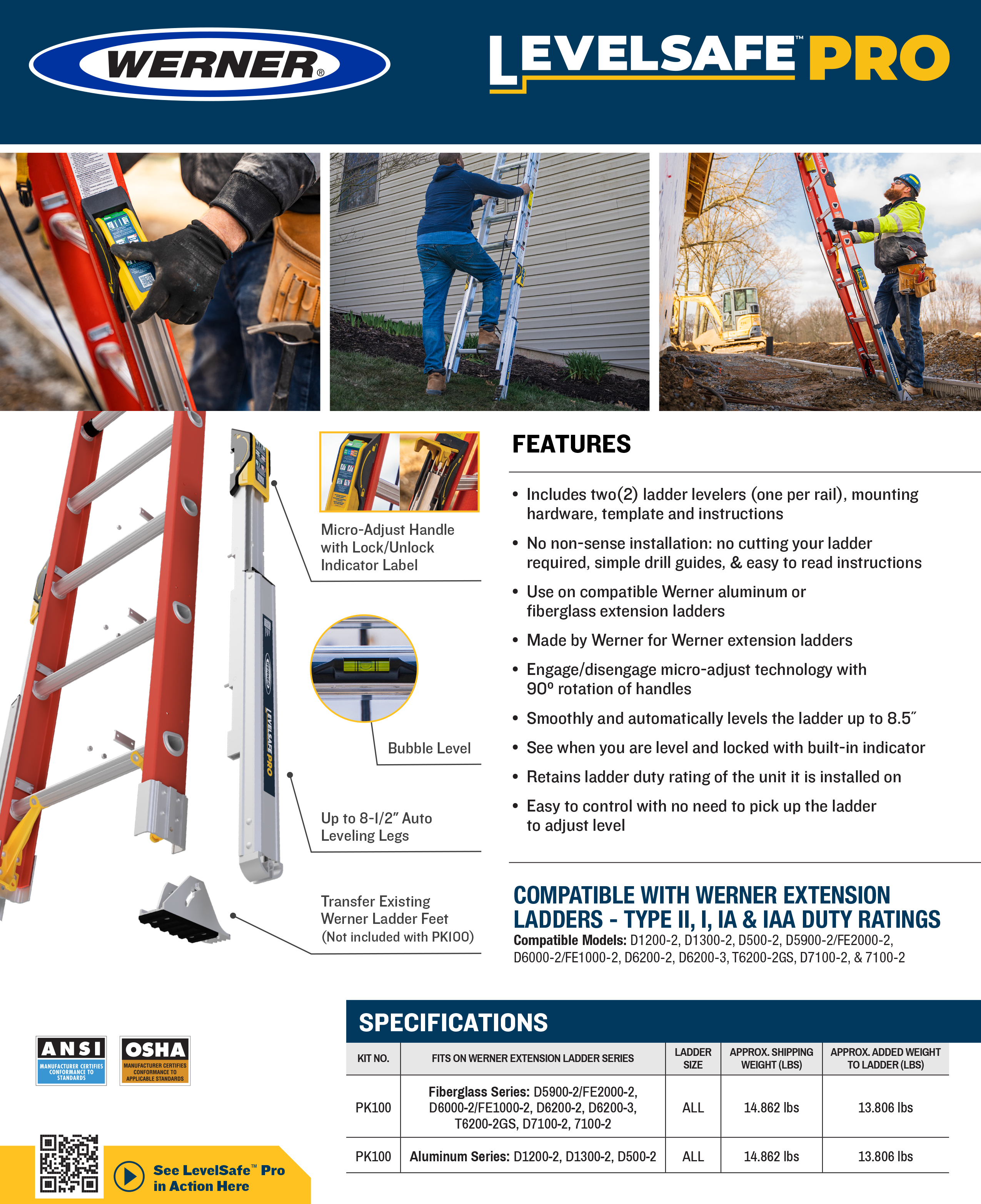 • Compatible for use with the following Werner ladder models: D1200-2, D1300-2, D500-2, D5900-2, D6000-2, D6200-2, D6200-3, T6200-2GS, D7100-2, 7100-2