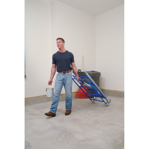 The PS-48 Portable Scaffold is a versatile, portable 4 ft scaffold that can be used as a push cart, working scaffold, storage shelf or work bench. Contains two planks (one 10 in, one 6 in deep), with combined 500 lbs load capacity (250 lbs per plank). Planks adjust to different working heights of 12 in, 24 in or 36 in. Non-marring wheels prevent damage to floor by securely locking into place. Multi-use S-hooks make transportation easy and are ToolLasso?? ready.